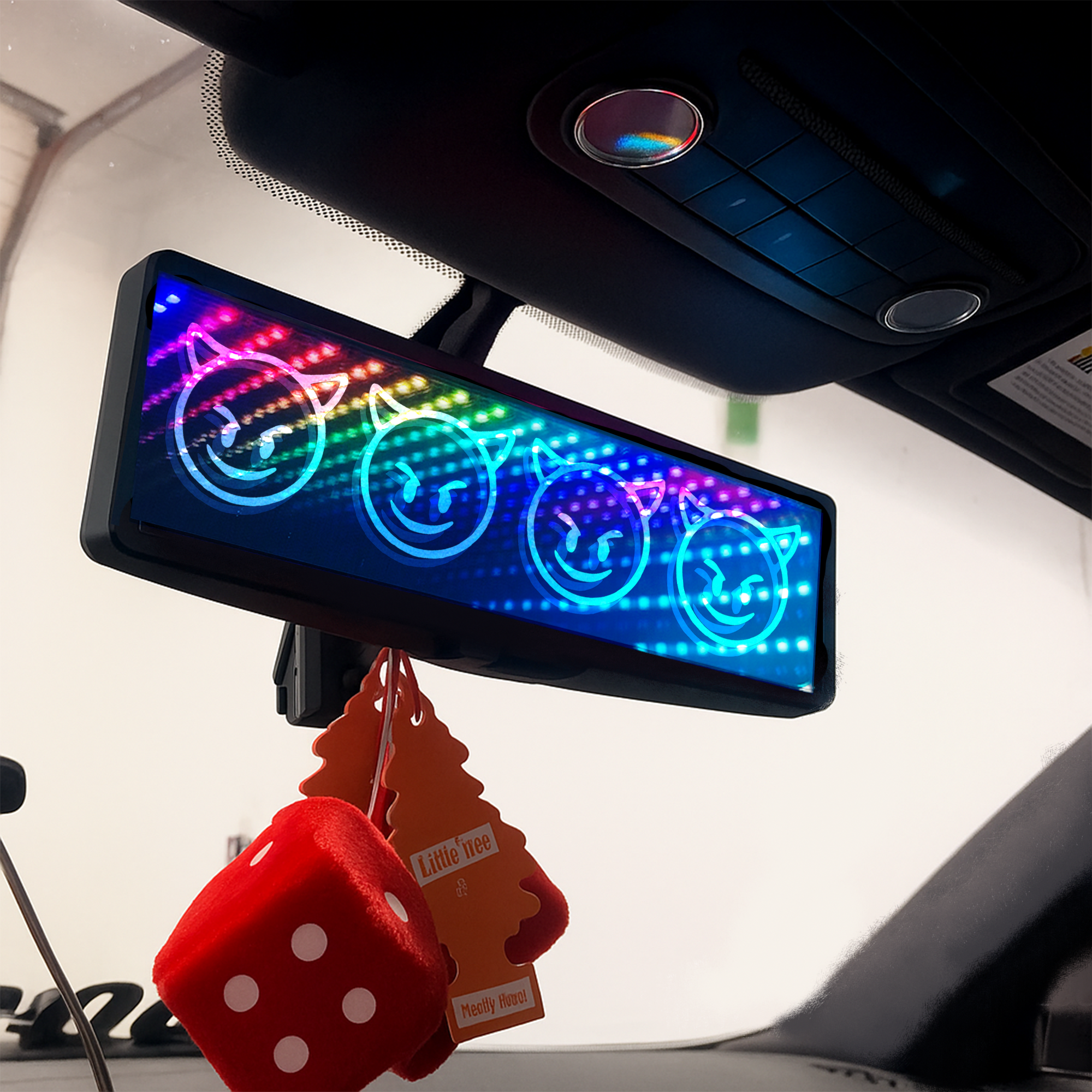 This is Our Beautiful RGB Rear View Mirror ! Coming with 9 Different Color Variations that you can choose from and switch out AT ANY TIME !